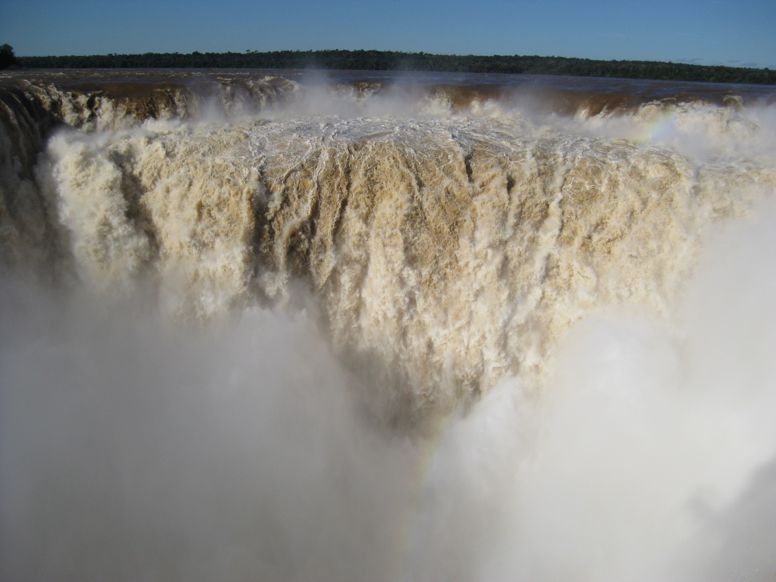 The most impressive part of the falls is right at the end (or the beginning, depending which way you want to do it), Garganta Del Diablo or Devil’s Throat. You have to get a little train to this part and, of course, at each end of the train ride there’s a little overpriced cafe selling lots of things you don’t need but want. Why do they always put these impulse purchase stores at places where you have to wait for stuff? And why do they always have things that aren’t good for you that you purchase knowing full well you shouldn’t? You tell yourself you don’t need the pastry goods and the beer, even as you hand over the money. Is it bad for my health? Fabulous, I’ll have four. Will the plastic, clear pyramid with the little model of the falls take up unnecessary space in my backpack? Great, give me the biggest.