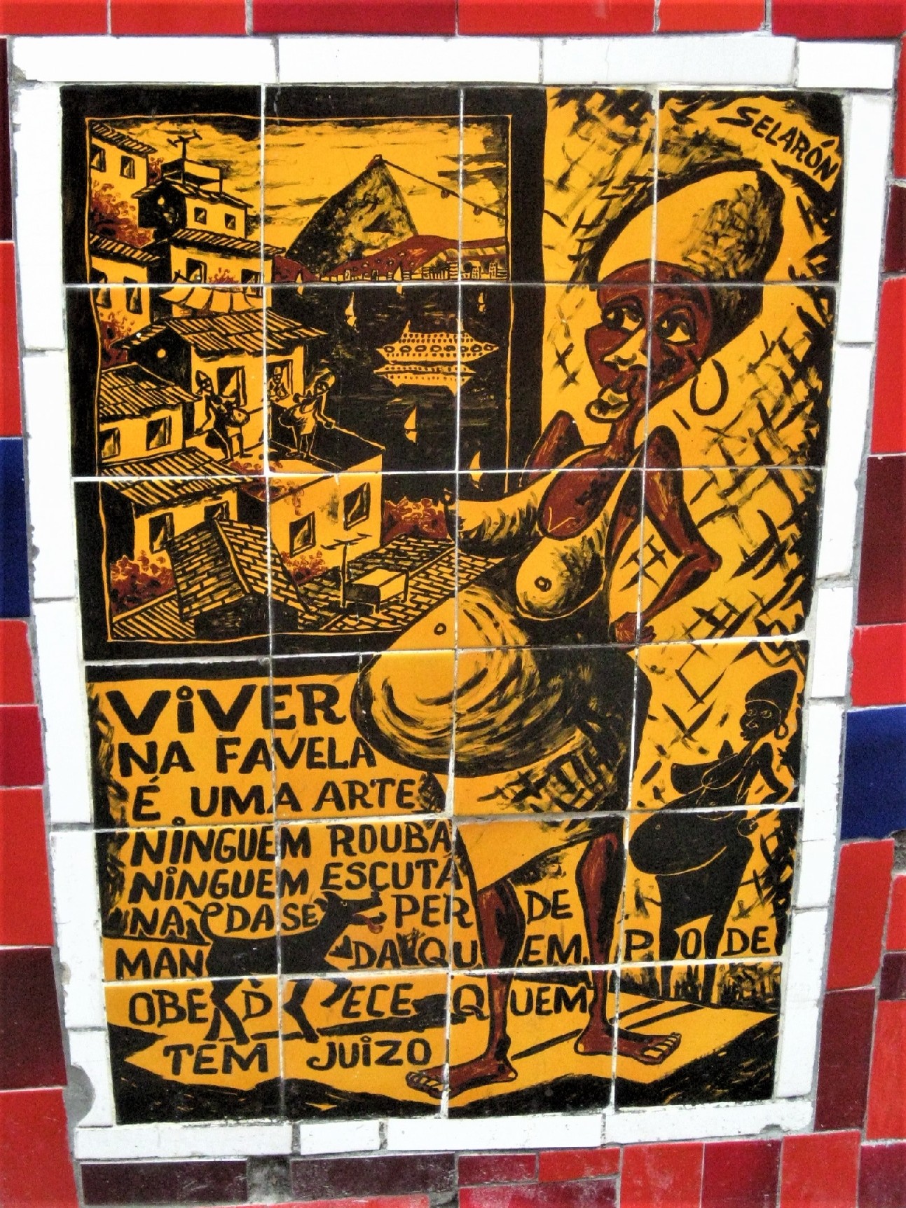 After we’d gotten our big, concrete statue fix we headed onward to Lapa to look at some steps. But they’re really pretty steps, made of tiles from all over the world. It’s the work, nay, obsession of an artist called Jorge Selarón who started it in 1990 as a tribute to the Brazilian people but it’s never going to be finished, he constantly renews the tiles section by section with tiles he paints himself or tiles that have been sent to him by foreign visitors and he says the work will only finish the day he snuffs it. He calls it “The Great Madness”. Well, ya gotta have a hobby I guess… But the steps are fucking cool.