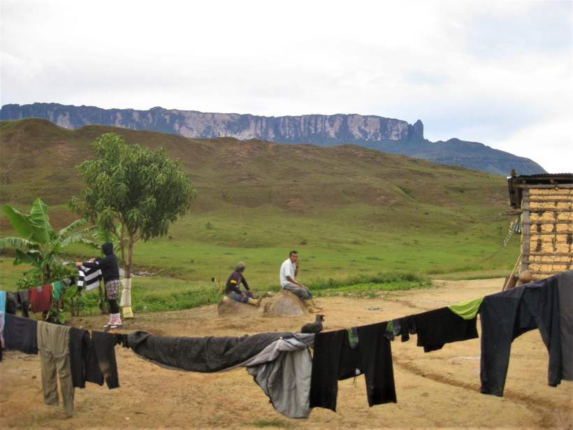 So I got myself to Santa Elena and booked myself onto a walk with Backpacker Tours and off we went towards a small, indigenous village at the beginning of the walk called Pataitupüy, managing to blow a tyre on the way whilst doing 140kph. Gotta love Venezuela. Miraculously we arrived in one piece, registered then began the walk. Day one of six. Bring it on, bitches. The first day is about 12kms across the savannah and you’re advised to walk in long sleeves and trousers so the puri-puri have less options for sampling the goods that are your blood cells. Anything that bites bites me so I complied, not entirely comfortable but I’d seen the state of some of the people who’d just done the trek, you could barely see parts of their skin for the bites. Fuck that for a game of soldiers, I’ll just sweat.