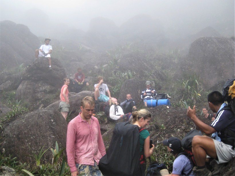 So I’m stood at the bottom of this tepui with sheer sides looking up thinking, how the fuck does anyone get up there, never mind someone who only has feet to stop them from blowing over in the wind? I absently picked at my puri-puri bites, thankful that at least they didn’t carry diseases although to be honest, I didn’t care if they showered twice a day, I’d still rather they kept their teeth to themselves. The weather was already ominous as one of the guys led some of the group in warm up exercises to prepare their muscles for the 5 hour climb we had ahead of us. I repeat. Why the fuck did I want to do this again??