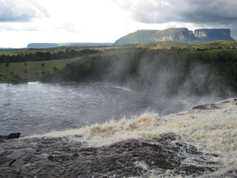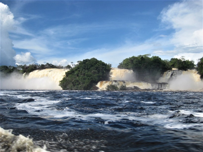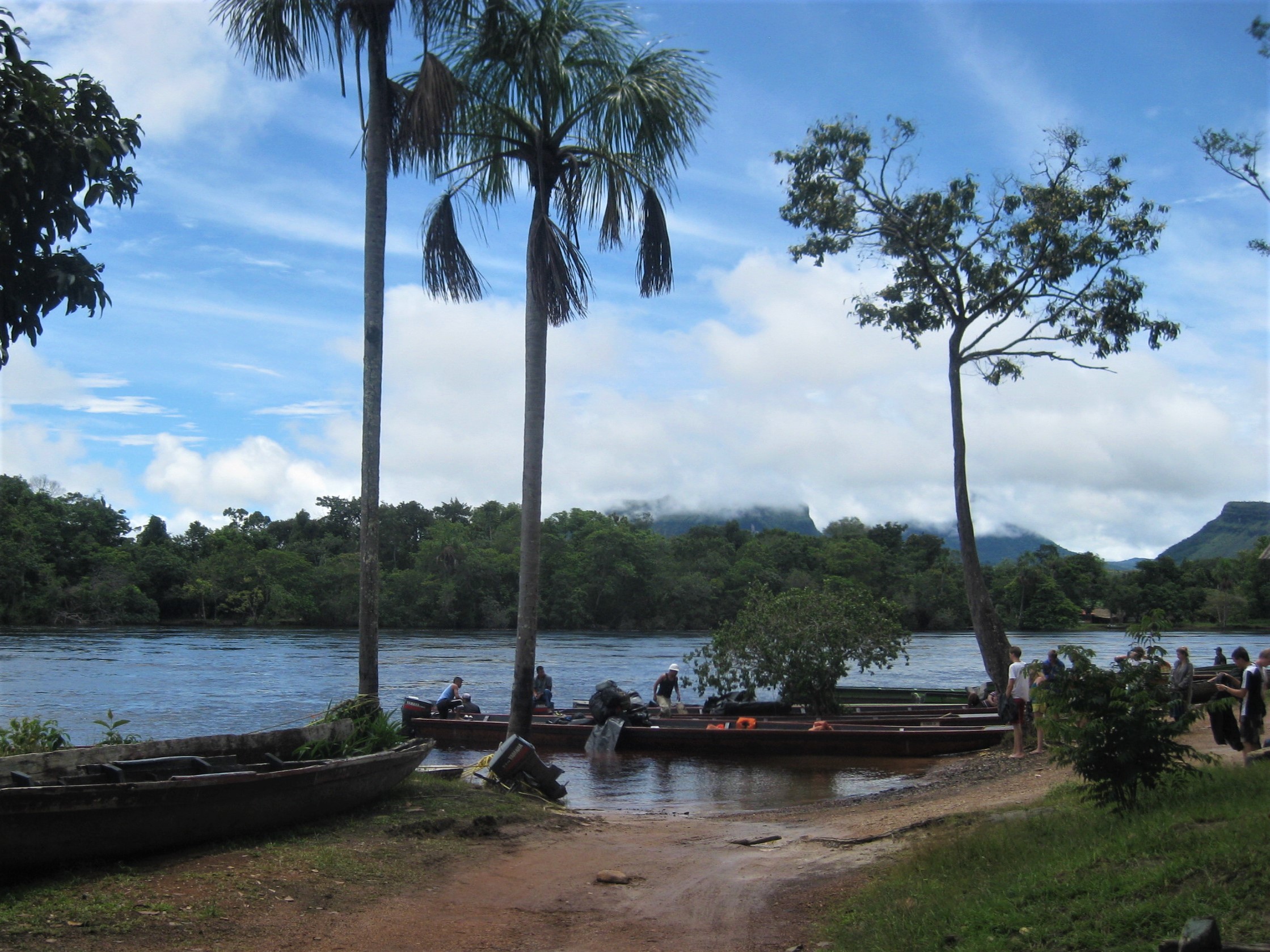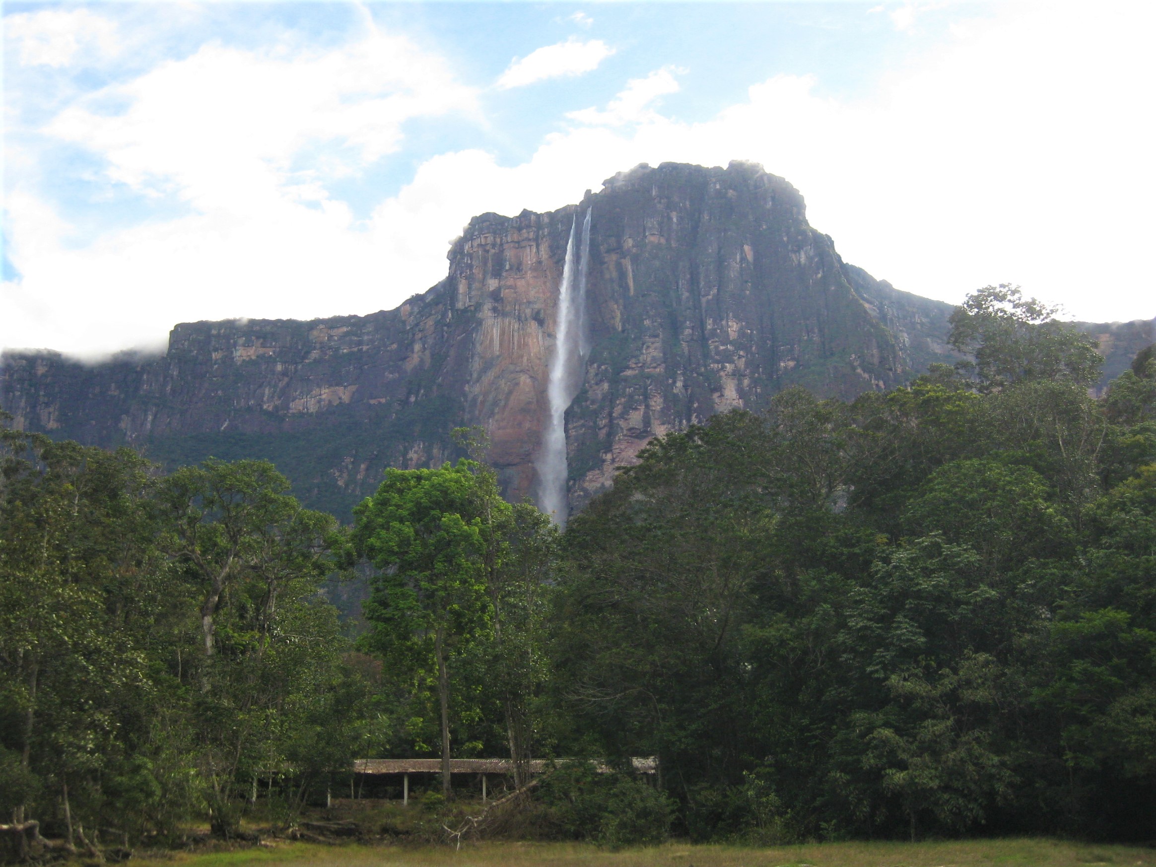The second boat trip felt like it’d never end but I was feeling heaps better. My stomach grudgingly accepted the ham and cheese roll offered to it and the scenery was astounding; tepui after tepui and not a single one we had to walk up. It was breathtaking and not in a Roraima way which takes your breath and refuses to give it back until you stop walking up and down mountains. We fought rapids in the motorised canoe as we made our way upstream to our camp for the night which happened to be positioned slap bang opposite the falls themselves. It couldn’t be a more perfect location. It was another jaw-hits-floor moment as we unloaded the boat and gazed at Angel Falls, the highest single drop waterfall in the world. We wouldn’t be walking to it today, it was too late, but we set up camp with our hammocks, fought over the ones that had the least holes in the mozzie nets and the ones that didn’t smell as bad and waited for dinner as we watched the falls plummet from Auyantepui into a mist until darkness fell.
