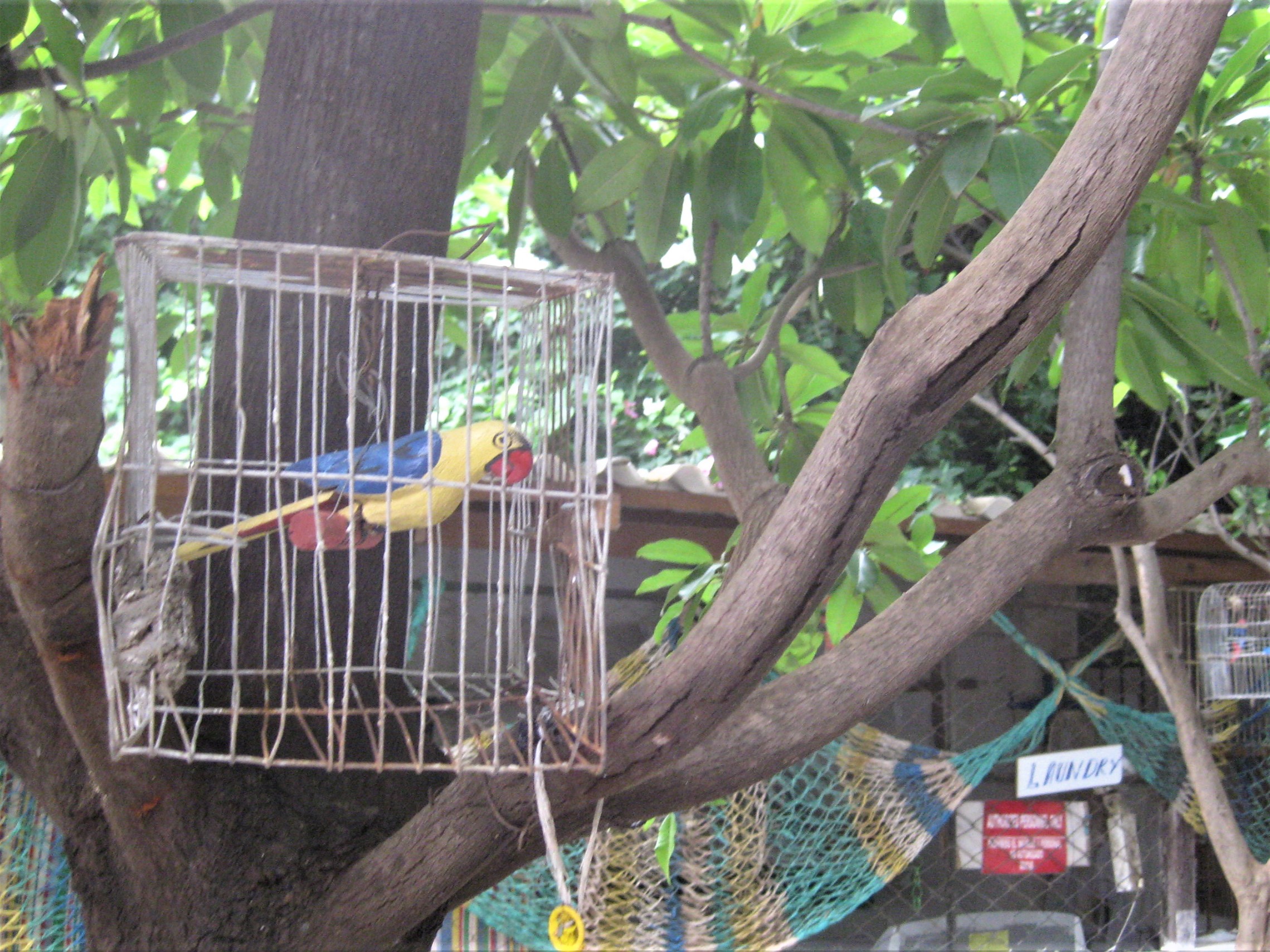 What else can I tell you… Oh, the decor in the place I stayed at, Hostal Moramar, that was a bit mental. Heaps of random stuff badly stuck together with plaster, posters pasted to the wall with the same plaster and a blue line drawn round it, cages with fake birds inside, a pool that had a shower running into it and a mural on the wall of a beach with a palm tree and a small dinosaur. I didn’t recall seeing any dinosaurs on the beach in town though. Must have been an old painting.