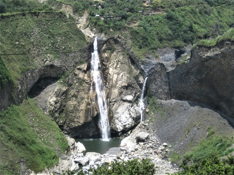 We finally caught the Germans at Cascada Pailón Del Diablo, a stunning waterfall you have to walk a little bit down to, after we’d spent some time doing a trolley ride to Cascada San Jorge to get a better view, and Valerie jumped off a bridge after a small amount of coaxing. And I rephrase, we didn’t catch the Germans, they came back to find us. Clearly they pedal too fast and it’s nothing to do with us faffing about on trolleys and bridges and getting in trouble with the cops. Ahem.