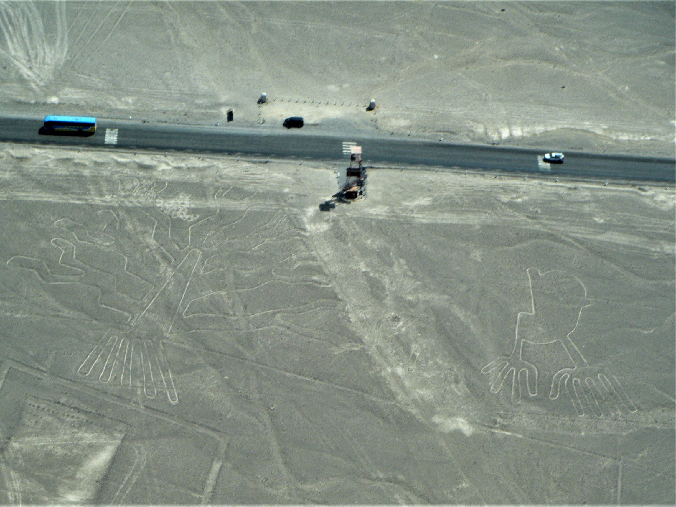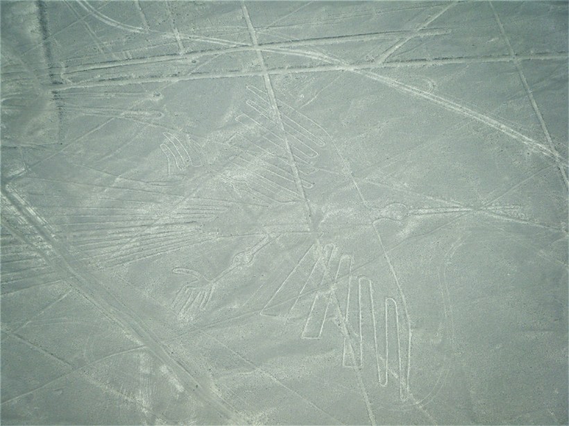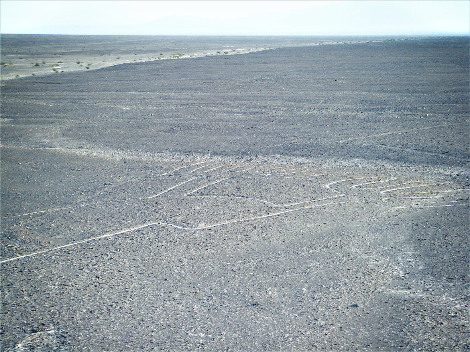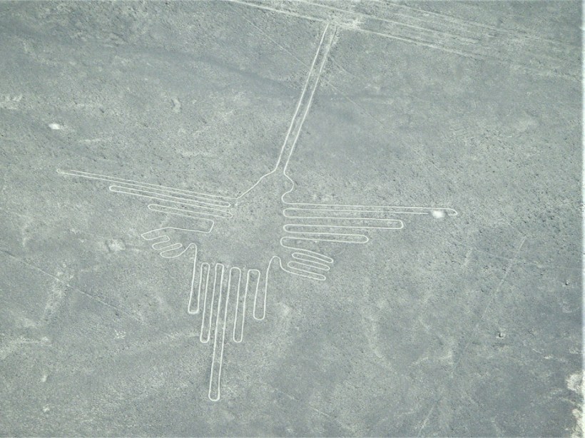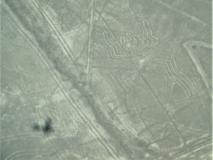 But what the fuck, you’re only in Nasca once, right? So off I went to catch a plane. It’s an awesome flight anyway, the landscape is so striking, it almost renders the lines themselves obsolete. After take off they begin by circling la ballena, the whale. They bank one way and then the other so the plane is tipped on its side enabling a direct view of the lines from the windows. They circle the trapezoids then they circle the dog then they circle the monkey and the condor and the humming bird and for the love of the god of clean upholstery can you please stop circling the fucking spider?!