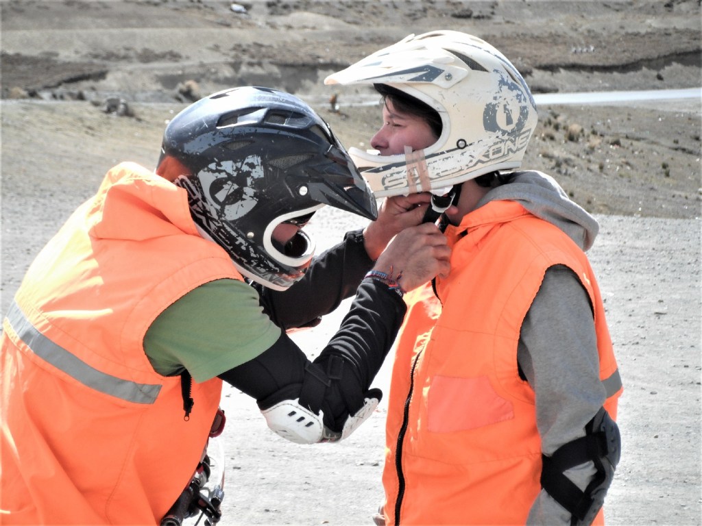 It’s always a mission when I’m assigned a helmet, I have a really tiny head and more often than not kids’ helmets fit me. It’s not my fault I’m highly evolved and all my vast knowledge is compacted into a smaller brain thus eliminating any space wastage with that large percent of the brain that people don’t use. You’d think they’d take us greater mortals into consideration when making safety gear. *flicks now somewhat lengthy hair*