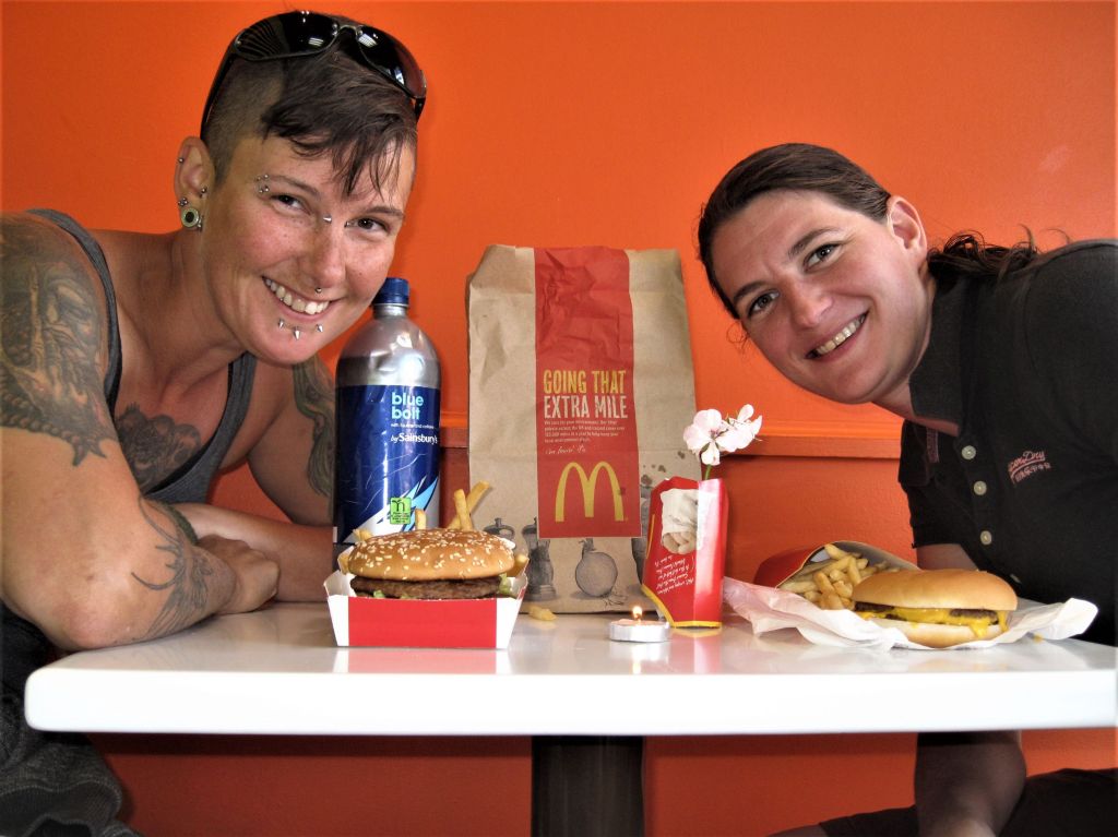 But at least we had our Macca’s lunch to look forward to because yes, we’re proper romantics, us. We had a candle and a flower and wine cunningly disguised as energy drink, and discount vouchers for that extra special greasy hit. We filled up on dead stuff wrapped in bread and the always divine Big Mac sauce, then it was onward to our next destination, safe in the knowledge we’d be starving again within about half an hour.