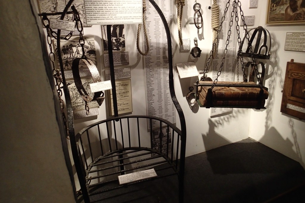 Anyway, this museum we’d come here to see. It’s actually really well laid out and very, very fascinating. It covers everything from images of witches through the ages and how we came to think of them wearing pointy hats and flying on broomsticks to the persecution of witches, complete with a replica of a weighing chair. They used to weigh suspected witches against a church bible. If the woman was heavier than the bible then she was considered innocent and they think the clergy promoted this method in order to prevent the torture and ill-treatment of the suspected women. Humans tend to be heavier than Bibles. They also used to tie them up and throw them in water. If they floated, they were guilty of witchcraft and burned at the stake. If they sank and drowned they were obvs innocent but it’s kind of a lose-lose situation all round for the accused.