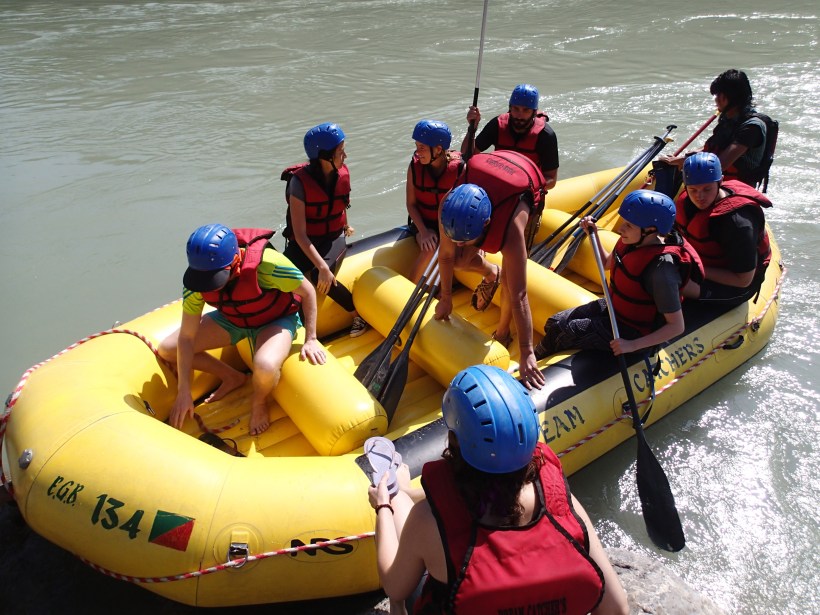 The thing with white water rafting is that you need to paddle in sync but that, my lovelies, is a metric fuck tonne harder than it sounds. Even in the smaller, grade II rapids it’s hard to keep time and in the grade IV motherfucker of a rapid where the raft is thrown around, paddling seems utterly futile but still you keep on going, your shoulders aren’t sure what’s going on but they’re pretty sure they’ll never forgive you, you can’t see, you’re trying desperately not to swallow a portion of the Ganga because I don’t give a shit how holy it is, you just don’t want it anywhere near your digestive system and oh, hello core muscles, I forgot you were there!