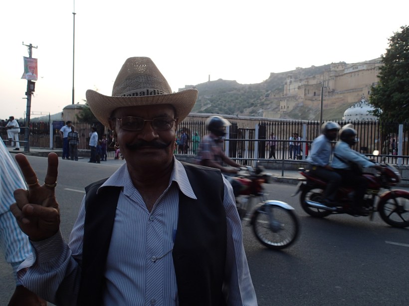 So, this tour. I was the only non-Indian on it which was fine, I just wanted get this tourist shit done and get out of Jaipur and it didn’t matter that no one had any real interest in holding a conversation with me. Just show me the fort and get me out of here please. The whole thing would be conducted in a canter whose vehicle reversing signal was basically our tiny, moustachioed guide leaning out of the window shouting, “Hello! Hello! Hellooooo! Hello!” And yeah, our guide was a legend! This short fella with an awesome moustache and a straw hat would be showing us around and mostly he would conduct the tour in Hindi then come over to me and translate into broken English, purely for my benefit.