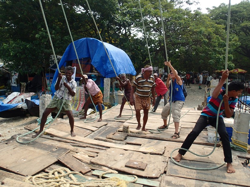 If you ever feel like bitching about your job then count yourself lucky that you don’t spend your day lowering and raising Chinese fishing nets in and out of the water though ay. The fishing nets are pretty awesome looking, if not wildly impractical and if you stand around looking gormless for long enough they’ll invite you on to take some photos, or you can just ask. They won’t say no because you’ll be paying them for the privilege. I was waved over so on I went where one guy took my camera and got me to pose on the net like it was some manner of Vogue photo shoot, then they got me to help haul the net up as they chanted. Even with four people it’s fucking hard work. As if I wasn’t sweating enough! Back in the day, the poles used to be made purely from bamboo but these days they’re metal and pulling them in is aided by big rocks tied to ropes hanging off the end. Once they’ve checked for fish in the net, two blokes have to walk up the sides to lower it back in where it’ll remain for around 10 minutes. It seems like a lot of effort for shore fishing, you’d probably have more luck with a hand line and some bait. Oh, and as for tipping, it doesn’t matter how much you give them, they’ll still ask for more. They must have had their tourist relation training in Rajasthan.