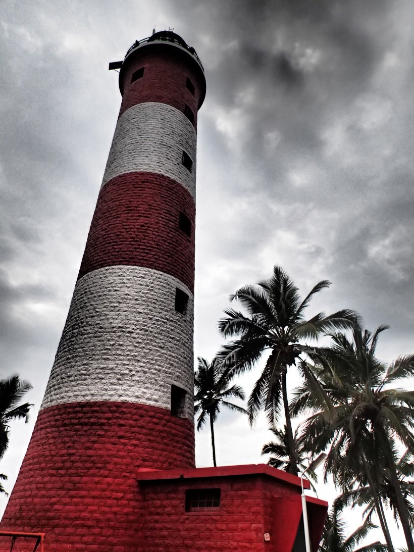 Kovalam is a beach town and it was very much not beach weather unless you happened to be some manner of web-footed waterfowl. Fortunately, Kovalam has a back up plan… Kinda… Ok, so there’s this lighthouse you can go up for some pretty awesome views and I’m a sucker for a view. So I did that, then me and Jill wandered in the vague direction of anywhere. There’s actually some good aimless strolling potential here. We ended up in a fishing village where men in mardanis untangled and repaired nets and I didn’t have the bottle to ask them for a photograph so I settled for taking photos of the boats and the mosque instead.