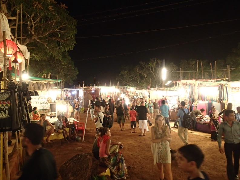 There are bars and live music and DJs playing trance for people to dance to. Or shuffle from foot to foot too with their heads down and their arms in the air under a sign saying that the night market was a drug free zone. Uh huh. Surrrre it is. It’s an awesome night though. We didn’t buy anything because we’re not fucking millionaires but it’s a really cool place to spend a late evening, racing Russians to get a seat in the bar area and waiting for your last snack to digest slightly so you can fit some more momos or prawns wrapped in bacon in your stomach. And yes. I’ve had “If You Like Piña Coladas” stuck in my head pretty much aaaall night.