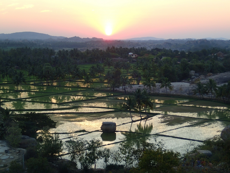 Hampi is what happens when you take a bunch of aesthetically pleasing stuff and chuck it all together in a manner that makes it really hard to keep your jaw from scraping on the floor in an undignified manner. I shit you not, your eyeholes won’t cope. It’s not just the boulders and the ruins it’s famous for, it’s the palm trees and the banana plantations and the whole bastard place reflecting in the rice fields. It’s so many different kinds of stunning.