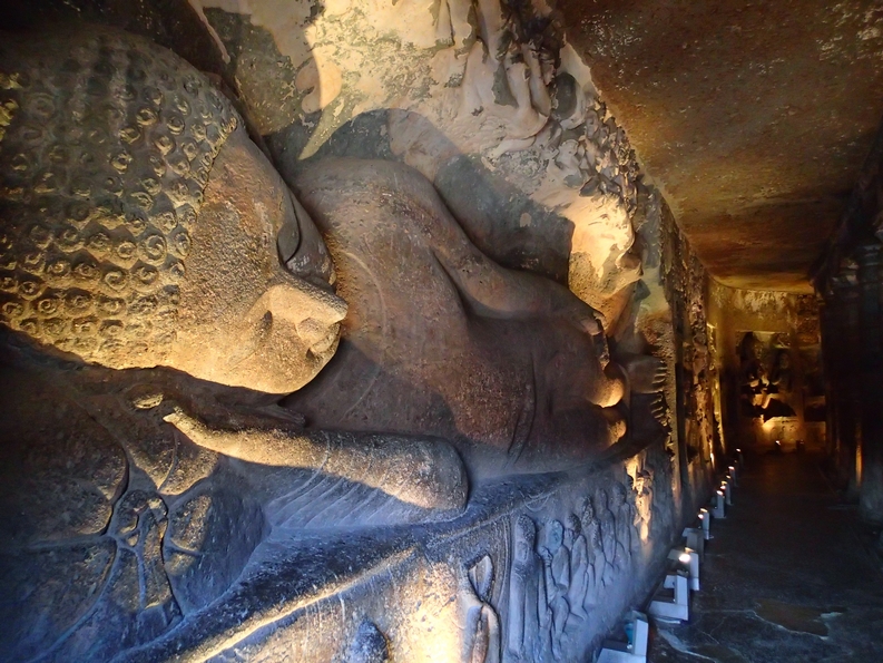 And again, because I don’t know anything about Buddhism I was pretty much just trawling from cave to cave, gawping at amazingly well preserved paintings with no real idea as to what was going on in them. Something about Jatakas which were the Buddha’s previous lives. The Bodhisattvas crop up again. I have to be honest, I’ve nothing really to write about them. I could genuinely appreciate them for the history they represent, the sheer age of the murals and the craftsmanship. They’re great and well worth a look, especially the cave with the reclining Buddha, there are a shit tonne of awesome sculptures in there. But hey, they’re just not the Kailasa Temple.