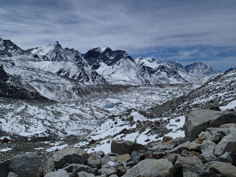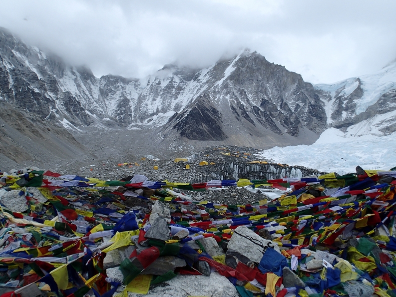 So off we shuffled, bistari bistari in the general direction of Gorakshep which would be where lunch would occur before Base Camp. The clouds started coming in pretty quickly today, by 10am the sky was grey but that’s fine. You can’t see Everest from Base Camp anyway, we didn’t need a view, we just needed to get there. As you get closer you catch glimpses of your goal in the distance. You can fucking see it! Surely it can’t be far now? It looked like it was just around the corner. It was 11.15am by the time we made it to Gorakshep at 5140 metres, where unconquerable mountains seem like manageable hills you could jog up in the morning with the dog and it’s so bastard cold that your nipples are pretty much visible from space. After lunch we pushed on, it was only a couple of hours away now, up and down and up and down, none of it particularly easy for someone who really, really enjoys being at sea level. On the beach. With a cocktail. Despite the fact we seemed in my little brain that we went down as much as we went up, we definitely ascended over 200 metres from Gorakshep, because that’s what the itinerary said we did and everyone knows that printed itineraries don’t lie.