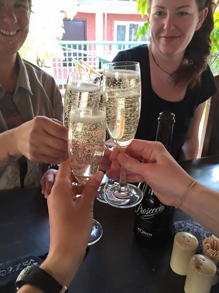 Anyway. Heaven would probably involve prosecco too. Me and Nat had already found Bamboo Club, a lovely little restaurant that flogged the fizzy stuff and we’d already decided we’d be pouring it liberally into our faceholes upon our return whether we made it to EBC or not. Nia and Sarah joined us too and we decided that obviously the best thing to do after consuming booze would be to locate and purchase a scarf and a poster of the Everest mountain range for Sin-Mei given that it was her who went though the stress of organising these strangers into a group to trek up a massive fucking hill in the freezing cold. No mean feat. I couldn’t have done it. I have enough trouble coordinating myself, never mind a bunch of other humans.