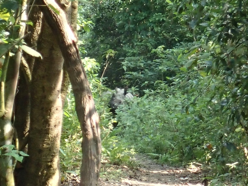 The best thing about being on foot is the fact that there’s no limit to where you can go. My guide frequently wandered off the trail and I wasn’t sure whether to follow him or if he was just nipping off for a piss. Then we saw one, right ahead of us. We stopped and watched it and you do find yourself sizing up trees that you could use for safety but there wasn’t a single one where I thought, yeah, I could easily monkey up that fucker. The rhino turned around and seemed to look at us and the guide grabbed my arm, ready to run. It took a few paces. We bolted but then it stopped and turned around so, with the guide still holding onto my arm, we ventured forwards again. Turns out they’re quick fuckers for their size. Stealthy too. By the time we’d gotten to where we’d seen it it had totally vanished. We carried on with our walk through the forest. The next one we saw was asleep but as we shuffled around it it raised its head. As soon as you see them you pretty much have to rethink your route. I was lead in a very wide circle around it. The walking was generally uneventful though. We saw plenty of deer, we took breaks to chill out and relax and eat some food. Sometimes the guides would pick these sour tasting berries for us to snack on too but I drew the line at eating a lemon like an apple. No, lads. No. Lemon is garnish. It’s something you squeeze over your fish. It’s an ingredient in many fine cocktails. It’s not, however, a tasty snack to enjoy whilst strolling through a forest. Weirdos.