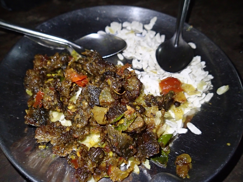 Talking of food though, the day before I’d been to Tharu Kitchen, a restaurant in town. Tharu is the name of the local people and I fancied trying some proper local food so I grabbed a menu and sat down. Under the Tharu section there was something called chichar which was served with all of the other things such as buff, veg, chicken or something called ghonghi. Ok, cool, I’ve no idea what any of this is but I’m just gonna go ahead and order the alien dish. Maybe. Probably not. I’d better check…