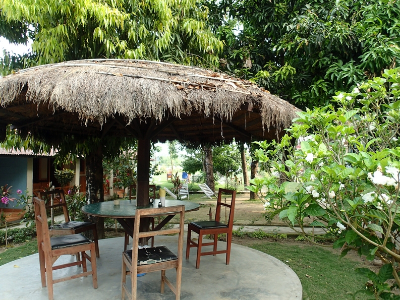 Yes. Resort. They have dorm beds which I think are usually used to accommodate tour leaders when they bring their mob to stay, but when it’s quiet they rent the beds out to backpackers which basically means you get a lovely garden and a hot shower for ₨300 a night instead of having to traipse around town looking for a cheap guesthouse. What’s also awesome is the fact the touts have to stand well away from the buses when they arrive in Sauraha so you don’t have to force your way through hoards of blokes waving leaflets and business cards in your face. As I started to walk back to town a taxi driver offered me a ₨10 ride and said, “then it’s up to you where you stay. Or do you have a reservation?” I said I did and showed him my booking and he said, “Ah, well you speak to these guys then,” and indicated the mob of men. A guy holding a Chitwan Forest Resort leaflet stepped forward, escorted me to a jeep and took me to my hotel for free. So far I really liked Chitwan.