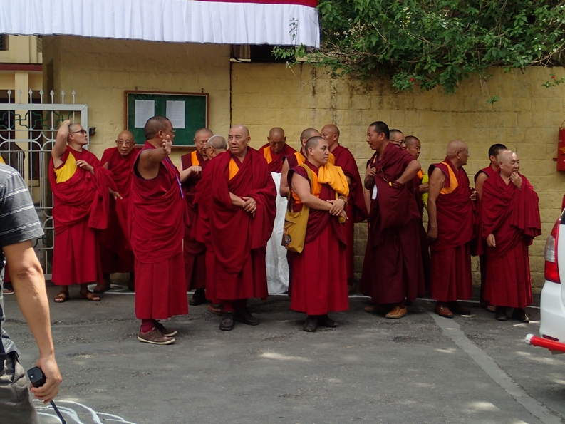 “The Dalai Lama is coming home!” we were told by several very excited people. He was coming home to talk at the Tsuglagkhang Complex as part of his official 80th birthday celebrations and the gate we were all staring at was the gate to his home. Okay, that’s pretty cool, we could hang around for a quick stalker glimpse of the DL. There was talk that his flight had been delayed but he was definitely on his way. We all stood around and waited and waited, and just as I was wondering how badly I needed to cop a fleeting glance of an elderly bloke in a car, a police van pulled up and a load of men jumped out brandishing massive guns. Seconds later a beigey sort of non-descript car cruised past. I barely had time to get my camera ready but there he was, the man himself, sitting in the front passenger seat smiling and waving at the remarkably well behaved crowd, the 14th Dalai Lama. So that happened, it was actually quite exciting, to be in the presence of this old, wise soul. He’s not just 80 in this body, he’s supposed to be the reincarnation of the very first Dalai Lama. When the Dalai Lama dies his spirit moves into a boy born around the same time, then they have to find this boy and I’m thinking needles and haystacks, then they have to prove it’s him by showing him lots of prayer beads and possessions of the last Dalai Lama and getting him to choose which ones belong to him, then he’s taken away for training. A really good movie to watch about his life is Kundun, there’s a little movie theatre in Mcleod Ganj which shows it a couple of times a week.