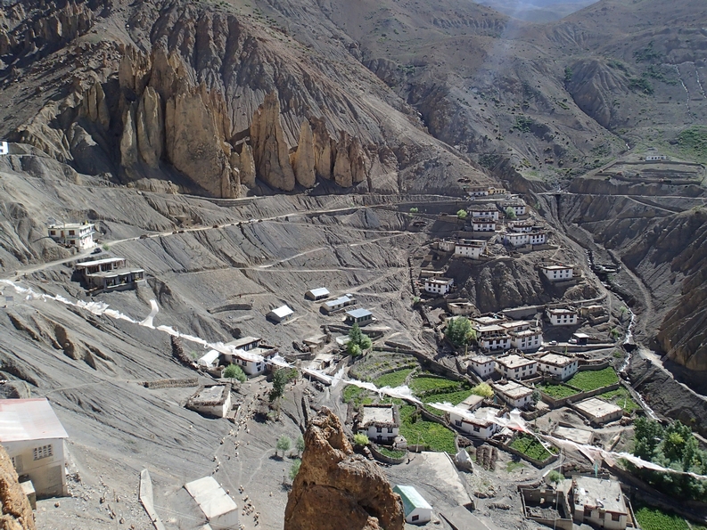 I still wasn’t 100% the next day which, as Jess pointed out, meant it wasn’t a hangover at all. That was good, I hadn’t held the others up on account of my inability to handle my booze. So there are two gompas, Buddhist monasteries, here; the new one where the lamas live, and the ancient one built into the cliffs which is the one we wanted to visit. It’s tiny and so well preserved, it’s around 1000 years old, I don’t know if it’s been restored or if it just survived on account of the lack of natural light in there. You let yourself in with a key hanging by the door, take photos without the flash, then leave respectfully and quietly, locking the door behind you. I loved it. It’s incredible. Dhankar is pretty cool anyway, with the epic rock formation dominating the village.