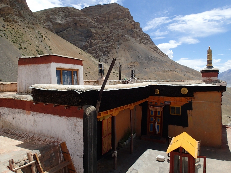 Anyway, we checked out Kibber and had a cup of tea before jumping back on the bike to climb higher for a better view of the gompa. This resulted in a lot of off-roading which could quite have easily resulted in a crash capable of depositing most of our flesh along the ground, and we didn’t even get that better view. So we headed down to the gompa to have a look around that. It’s pretty cool, at 4166 masl apparently but it didn’t feel like it, it felt very different to being above 4000 metres on the Everest Base Camp Trek, but then again I wasn’t freezing bastard cold and trying to walk up a massive fucking hill. It looks the way it does as it’s been attacked so many times throughout so many wars and has been patched up and added to as they went along. I can’t remember why I didn’t take any photos inside, I don’t recall if we were allowed to or not, but a lot of the rooms were locked. As we were leaving, we got chatting to a woman from Singapore who was staying there to study Buddhism as a Buddhist herself. She was so helpful and knew a lot of the monks. She lead us into a room and introduced us to a man who gave us tea then showed us around a few more rooms. The woman from Singapore explained a lot of stuff to us. There are a lot of ancient scrolls, paintings and artifacts in there too. She showed us a few simple rituals which involved touching your forehead to statues. I’ve very glad we met her or we wouldn’t have seen half as much as we did.