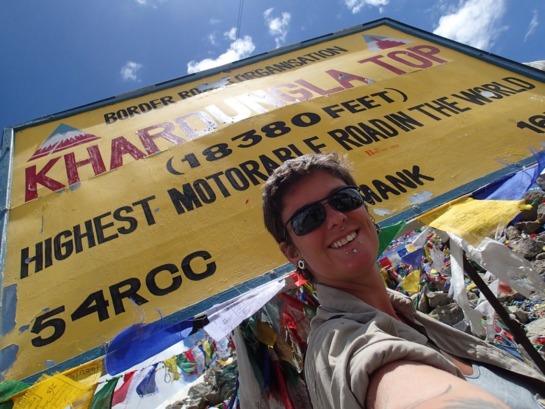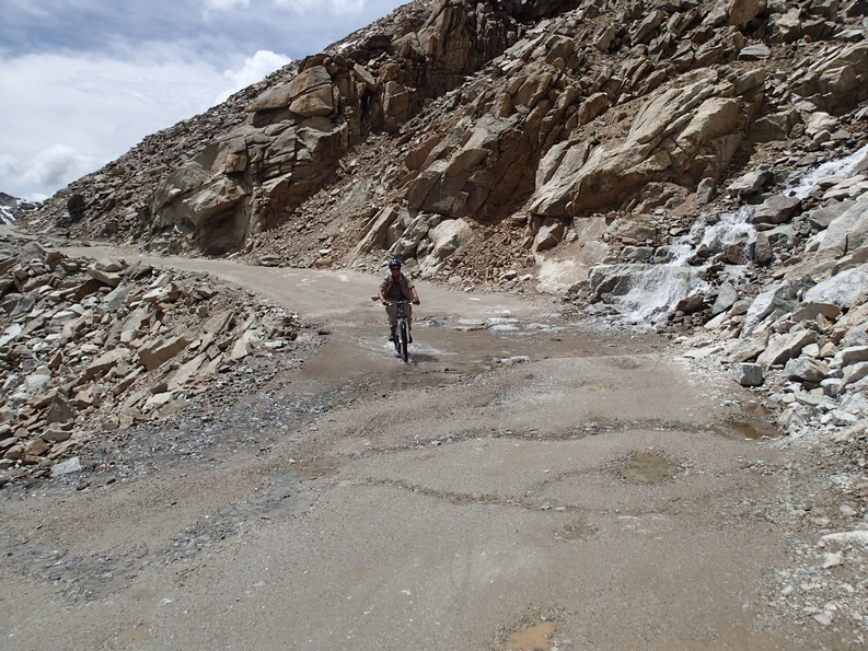 Once you’re there you won’t be alone, there’ll be people on motorcycles and vans full of humans, all vying for that photograph with the big sign announcing that you’re currently standing on the highest motorable road in the world which we all know is a fucking lie but we don’t care because we’re all relentless tourists and we want an excuse to buy the embroidered patch to sew onto our backpacks. And once you’ve gotten that out of your system it’s time to get on your bikes and head down the hill whilst trying not to hit the potholes that’d send you flying over your handlebars. The three of us stayed together for a short while but Jess wanted to go faster then me and Austin so she went on ahead whilst we meandered down, stopping frequently for staged photographs of us cycling through puddles and the appropriate amount of selfies. A couple of people were struggling a bit, the rapid transition from 3520 masl to 5359 masl had completely thrown them out. Fortunately the last member of the group is followed down the mountain by guides in a pick up truck so anyone having problems can be loaded into a vehicle and taken down that way. That’s the theory anyway but I’m sure I saw those bastards drive past us at one point.