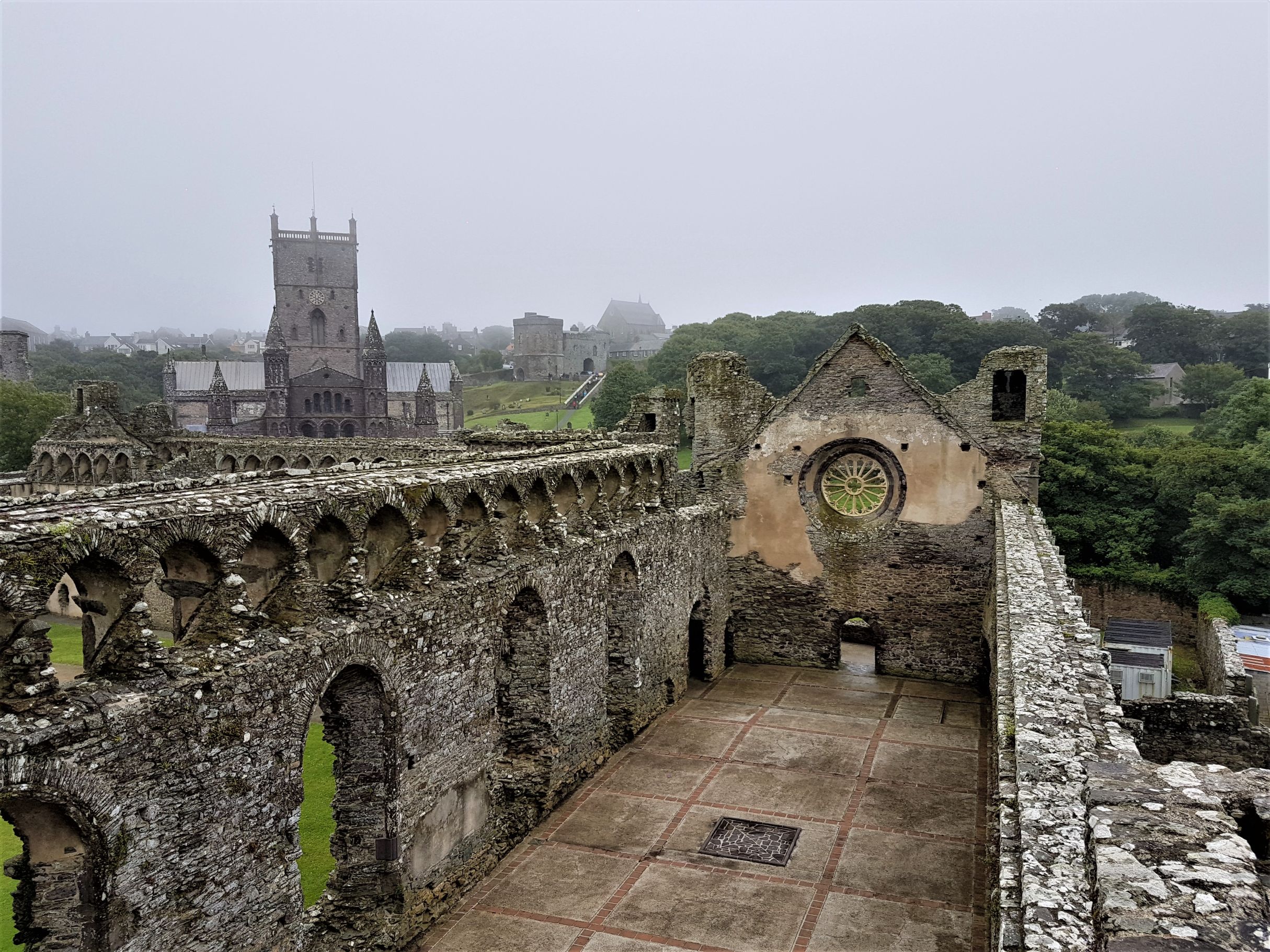 We stashed our new haul in the car and continued on to St David’s which is the tiniest city in all the land on account of the fuck off great big cathedral there. The cathedral was closed though because someone was having the audacity to get married there so we headed over to the ruins next to it, Bishop’s Palace, where we parted with £3.50 each to have a wander around it. I love a ruin. They’re roofless pieces of history. There’s not much off limits here, you can explore most places including the corridors and spiral staircases that the servants used to get around without being seen. They’re very fucking narrow and steep. You wouldn’t want to be a servant with a penchant for pies, and you’d shuffle up and down the steps in the constant fear that you’d trip and fall and unceremoniously distribute the contents of that chamber pot you were carrying over the palace walls.
