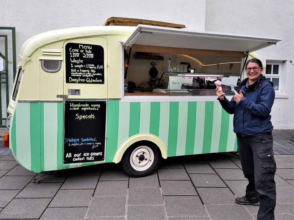 Ah fuck it then, we decided to have a stroll through town which I’m pretty glad we did because we found several cheesy 80’s CD’s in a charity shop where nobody tried to discuss vaginal infections with me like they did in the last charity shop we went to, and we also found a woman who sold homemade dairy free ice cream from a funky little trailer. Mate. It’s amazing. Now, as much as I enjoy consuming the nipple juice of another species, Tarrant can’t, so we’re all over anything dairy free and delicious. Ice Green make their ice cream from cashew nuts so if you’re dairy intolerant and have a nut allergy then I’m very very sorry. Here’s some lettuce instead.