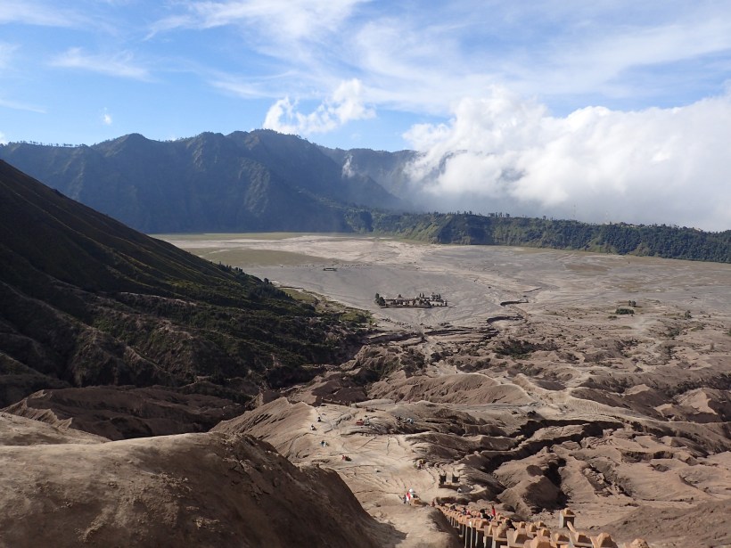 Yeah you can see why they call it that, it’s literally a huge expanse of sand which you now have to get across to the crater. Take water. Shit loads of water. You’ll be offered rides on horses by the local Tengger people, it’s up to you if you take them up on it, I’ve no idea how much it’d cost but they’re not big horses and I was worried I’d break it’s poor back if I tried to haul my fat arse onto it. Oh, and don’t try and jump the fence to get down the old free track, they’ve built fences and dug ditches all the way down to deter freeloaders. We know this because we walked back that way. I had to be helped over trenches like an elderly lady getting off a train with a particularly large gap to the platform. It was like the fucking Krypton Factor.