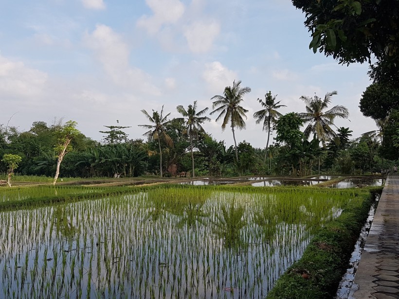 So a quick scan of the various accommodation apps on my phone told us there were a few budget options around Stasiun Karangasem and that’s where we headed. One couple got off earlier and after strolling around the tiny area the other three opted for Anggun Homestay but me and Tarrant opted for a room with a Western toilet and Wi-Fi at Gandrung Payungan Inn. This is possibly the best accommodation decision we’d made so far. Just walking around Stasiun Karangasem, even at night, we could tell it’s a beautiful place and the guest house is so lovely and amazingly priced. But it’s the couple that run it that make it. They’re so so genuine. We were plied with tea and papaya, and they allowed the others to come and use the Wi-Fi even though they weren’t staying there and looked after them too. I’ve no idea what the rest of Banyuwangi is like, we didn’t have to venture into the town at all, but we ended up deciding not to rush to Ijen that night with the others in favour of some sleep and a much needed chill out day amongst the banana trees and rice fields.