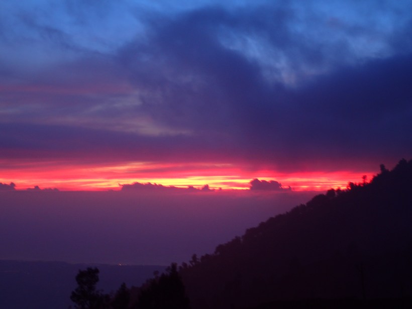 We sat there for about 15 minutes and stared at them and took photos which weren’t going to win any NatGeo awards any time soon but they made us happy. It’s not far up to the sunrise point from there, there was still quite a bit of cloud and the sunrise was more of a case of a strip of visible sky turning a fiery shade of orange which was spectacular in its own way. So heading back down is an experience then, you don’t realise how fucking close to the edge you’re walking when it’s dark which is probably a good thing because I’d probably have clung onto one of the eerie black trees and demanded someone send a helicopter.
