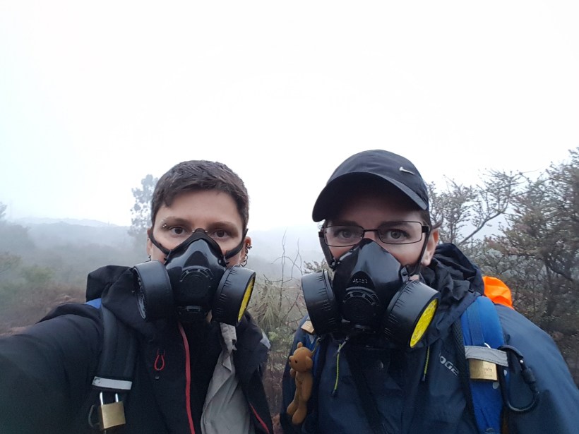 But bother we did. After about an hour of incline we got to a little tea shop where you could buy drinks and snacks and, apparently, rent gas masks if you didn’t already have one. It was still raining. Everyone had been told they couldn’t go further until 3am, something to do with high toxicity levels in the crater at 2am? I’ve no idea but they’ve been doing this since March and we’d already read that we wouldn’t be allowed down to the crater to get close to the blue flames. It was 3am by the time we gasped our way to this point anyway so we just carried straight on, struggling up the last hour to the crater. I didn’t think my respiratory system would ever forgive me for this.