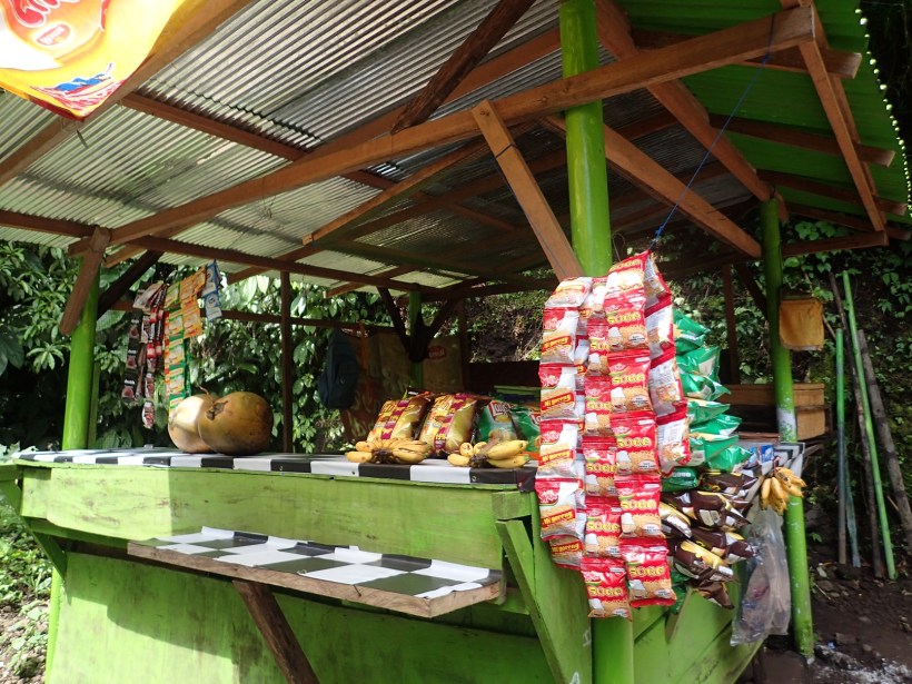 Eventually you come to a ticket booth where you part with the princely sum of Rp5000 each and continue down. Seriously. Just keep on going. It’s an endless kind of down. You pass warungs which have civets in cages, the little animals which eat coffee cherries and shit out the beans which are collected and used to make kopi luwak, the most expensive coffee in the world. People have taken to keeping them in cages and force feeding them the cherries. It’s not a good practice for some glaringly obvious reasons and for these reasons we’d not tried the coffee yet as you can’t guarantee the source. I didn’t take any photos of them, the poor little buggers were in cages that were far too small for them and they looked terrified.