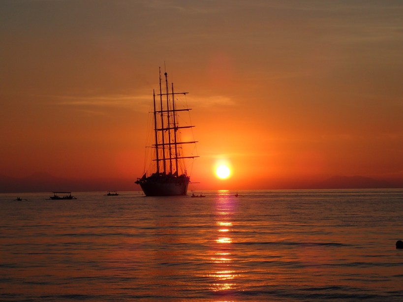 So yeah, this was a cracking sunset. There was a big tourist boat with more rigging than a general election which made for some stunning photos. Less good for spotting bio-luminescent plankton when it’s lit up like Blackpool bloody illuminations at night. We did head down to try and find some at 10pm but a bloke we met on the beach called Putu said with the boat there we wouldn’t have any luck but he’d be on the beach the following night making a fire to get warm by once we’d been for a swim. Not that I could imagine being any manner of cold ever again, but a fire sounded good.