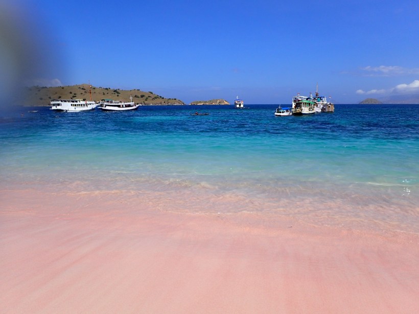 As we sailed into the bay I raised an eyebrow. Yeah, fuck off that’s pink, it’s about as pink as my arse. For the record, my arse is very very white. You could use it to reflect the sun’s rays and destroy planets. You’ll have to take my word for it though because I ain’t proving it here. We anchored quite a way from the beach and it was a hard swim in against a current but once you’re there you can see the colour in the wet sand. Ah okay. There you go. Pink.