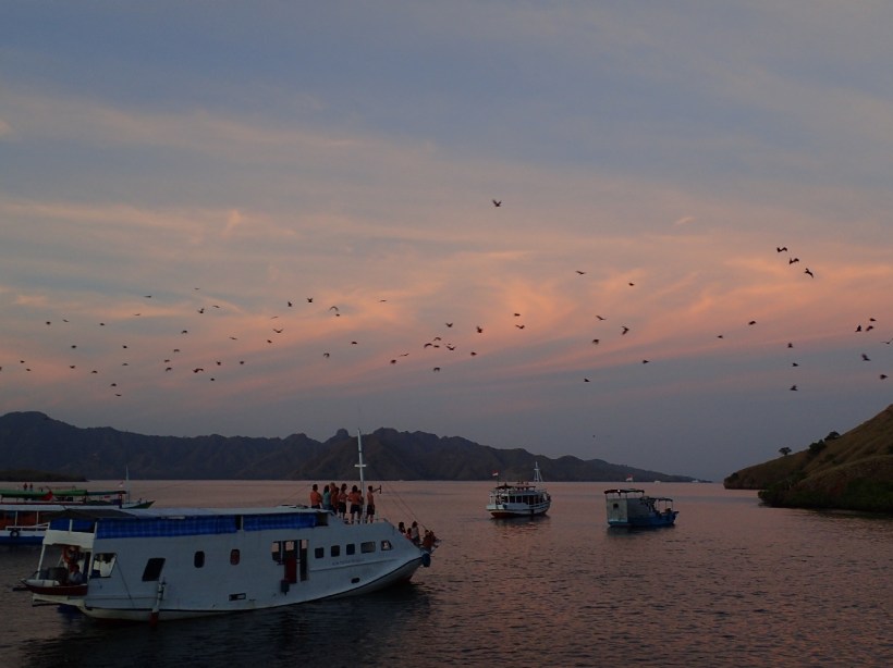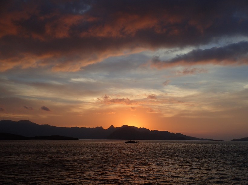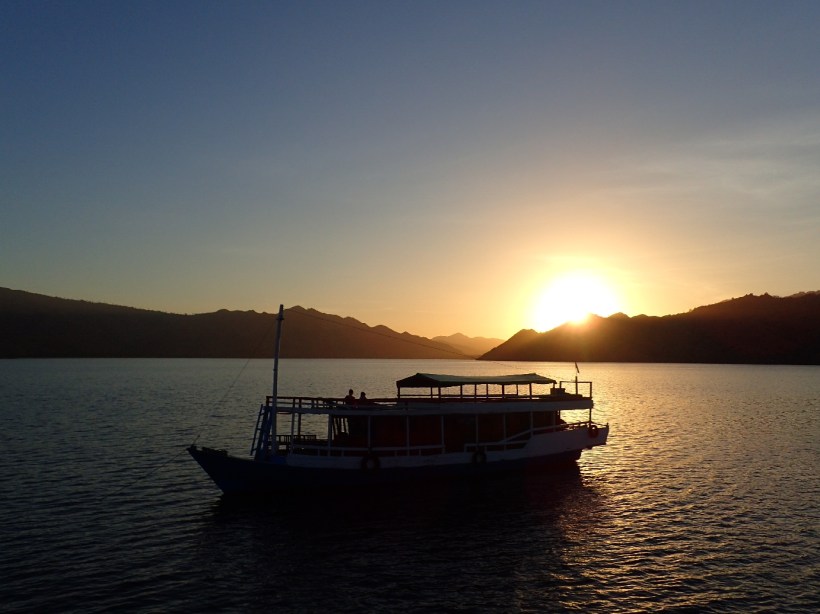 I wouldn’t have rated my sleep as quality last night but the back and forth rocking of the boat was much less traumatic than the side to side of the other night. I opened my eyes and peered outside. The sky was on fire! What a stunning sunrise. My basic motor functions grudgingly agreed to an early start and I sat on the deck just drinking in the view. More people awoke and joined me, we sat in a row gazing at the horizon as the sun crept up and illuminated our morning. We puttered into a bay where we’d be having breakfast and a large sign on land welcomed us to Komodo National Park, but the crap lining the shore was… I don’t even have words for it.