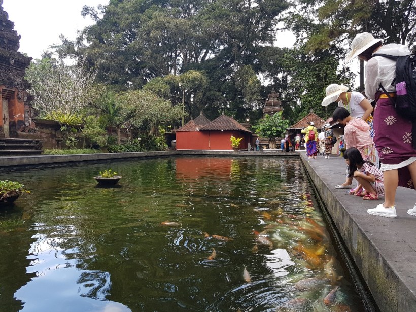 We wandered around for a little bit and watched people as they prayed, left offerings and let the fountains wash over their heads. We sat for a while and decided if we were going to do this then we wanted to do it properly, and for this we’d need a guide. We didn’t even know if guides were a thing here, no one had offered us their services which is generally unheard of when guiding services are available, usually you’re descended on before you’ve had time to fasten your sarong. So we ended up asking a guy, who asked another guy, who went off and found us a local guide to tell us everything we needed to know about the water purification ritual at Tirta Empul.