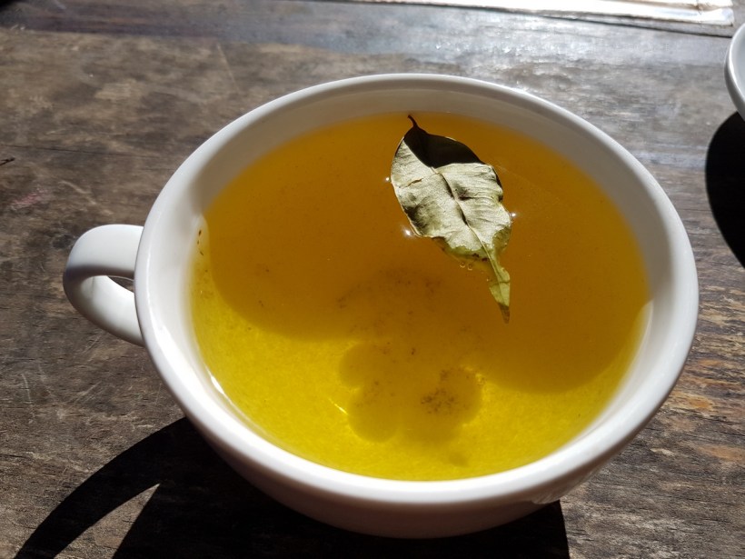 I also ordered something called mountain tea which, it turned out, is an odd, bitter drink made from locally grown green leaves but from what tree I’ve no bastard clue. It tastes exactly like you’d expect leaves to taste too until you add honey to it and it becomes the nectar of the gods. Literally no one knows what it is. You can buy bags of it in shops and even they don’t know. The usual answer is, “It is a tree that grows here. Up in the mountains. We just call it mountain tea.” Good. Well I’ll be applying that to my facehole regularly for the next few days.
