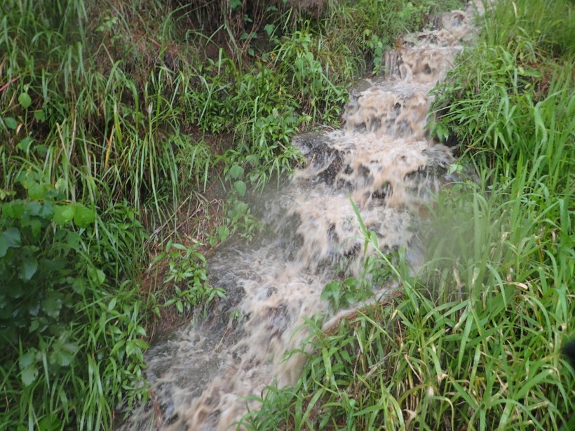 It’s was the kind of tropical rain that turns steps into waterfalls and footpaths into rivers. If I thought it was scary before it was terrifying now the ground was made of slush and misery. My shoes, still slung around my neck, quickly filled with water and not just a little bit, they were fucking flooded. You could breed frogs in them. I’m not even shitting you. We trudged along because trudging is the only forward movement possible when you’re this drenched and your waterproofs are nothing of the sort until we came to the little waterfall. Our guide looked at us.