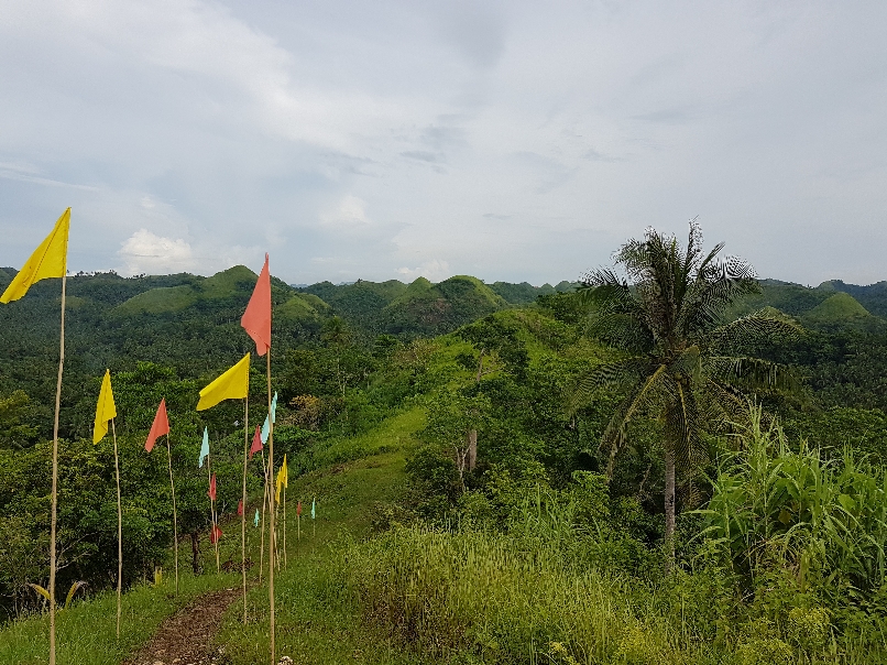 We were led through a forest where she pointed out plants and trees including a guava tree. She picked a few and handed them to us, keeping one for herself as she wandered off ahead of us, happily munching on it. I’ve never had a guava before, I wouldn’t have a clue what they were meant to taste like. I took a bite. I looked at Tarrant. Okay, how could I get this out of my mouth quickly without offending our guide? I swear it sucked all of the moisture from my face, it was bloody awful, I couldn’t apologise to my tongue enough. I managed to spit it out whilst her back was turned and mentally added it to the list of things I would never put in my mouth ever again. We headed up steps made from tyres, still trying to remove the damn guava completely from my mouth, until we got to the top for some stunning views across some utterly breathtaking scenery. Guys, this was awesome. There are these lumpy hills called the Quitinday Hills which apparently look a lot like the famous Chocolate Hills in Bohol.