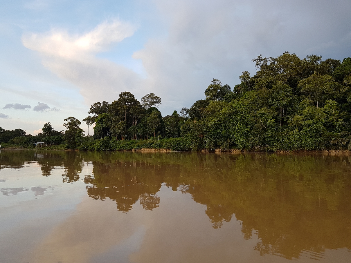 The boat stopped and started to reverse. Oh thank fuck for that, we were heading back! But Mr Aji was gazing off into the trees. We followed his gaze and I shit you not, the rain stopped. It fucking stopped. And there, in the trees, just hanging out and minding her own business, was an actual real-life completely wild orangutan! Oh my god, seriously, we’ve been here a matter of hours and there she was. And guys, don’t do what I did and go to Borneo with just your phone as a camera or you’ll end up waving your £500 worth of telecommunications equipment uselessly at trees and filling your storage with blurry photos of foliage that may or may not contain large, orange apes. I don’t have any photos of this (well, I do, but it just looks like an indistinct tree-blob), you’ll have to take my word for it, but it was incredible.