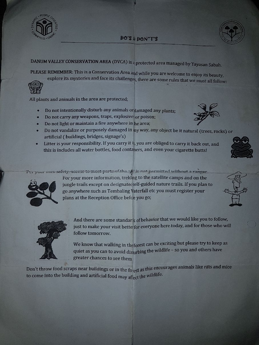 I don’t recall where I first read about Danum Valley Conservation Area when I was researching Sabah, possibly the Lonely Planet, fuck knows, but I knew that we definitely wanted to try and visit. It’s a largely untouched swathe of rainforest which still has areas of primary rainforest, a rarity in Borneo where acres of jungle are being destroyed to make way for palm oil plantations. There are two places to stay; The Borneo Rainforest Lodge if you didn’t mind hocking a few organs on the black market to afford a room (or even had the foresight to book half your life in advance), or there’s the Danum Valley Field Centre (also known as Danum Valley Studies Centre) which can still be considered pricey for those of us on a backpacker’s budget, but at least you don’t have to promise your first born to Satan.