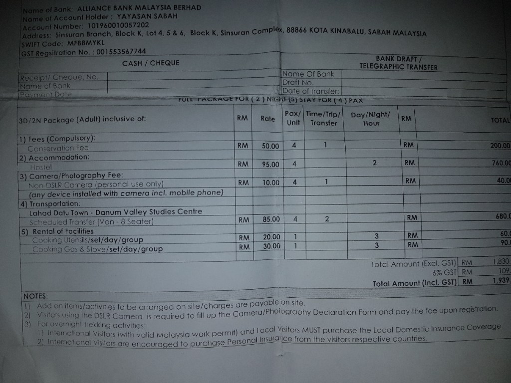 I arranged everything by email with Rosnita (roserlie2507@gmail.com) and then Dinisiah (inid69@yahoo.com) as Rose became too busy organising a science expedition, who are based in KK. It can take a while for them to respond to emails because they’re not a tourist service, they’re a research centre who welcome visitors. If for some reason you can’t sort it this way perhaps you can just visit the field office in Lahad Datu and speak to Suzan, or call her on +60 8988 0441. She’s wonderful, very friendly and helpful, but please note I’ve no idea if it can be booked this way. I’d be interested to hear if you do this and are successful. Or, of course, you can pay Sticky Rice Tours to do it all for you.
