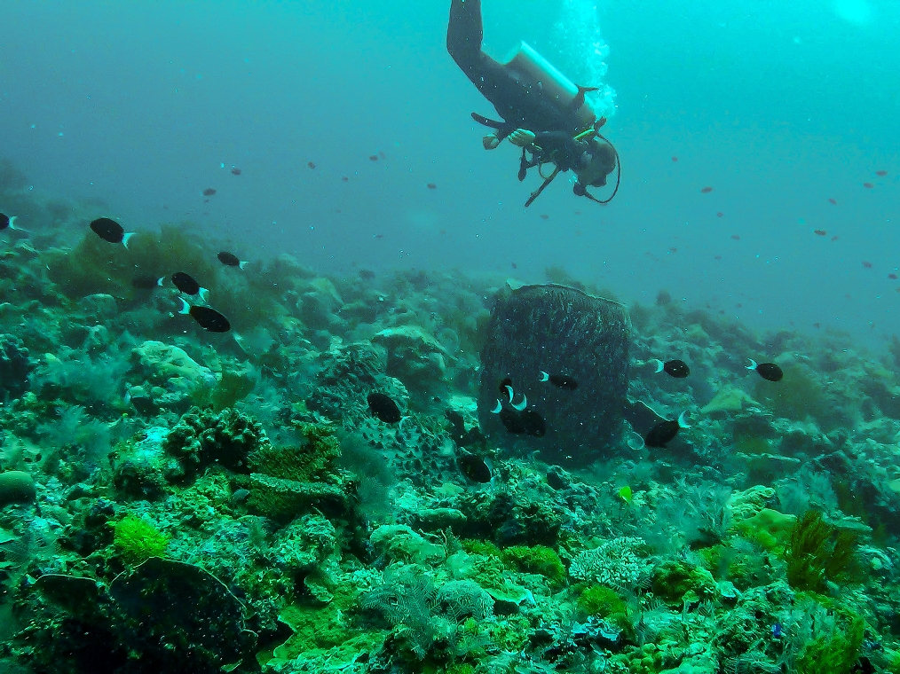 Our first dive was at Barracuda Point. We back rolled off the boat and descended and the first thing we saw were a shit load of schooling jack fish. Like, we were barely down and we were faced with this wall of scales. It didn’t take long before we spotted a grey reef shark just chilling on the bottom either. It was big. Not “rip your head off for a tasty snack” big, but big enough to make your bum hole twitch. This fucking dive though, guys, it was sensory overload, I didn’t know where to look. There were fish everywhere, hundreds and hundreds of fish, too many to remember so I could ask what they were afterwards. Of course dickhead here forgot to buy a red filter for the GoPro so nothing I post here will be exactly as I saw it. Try and imagine more colour.