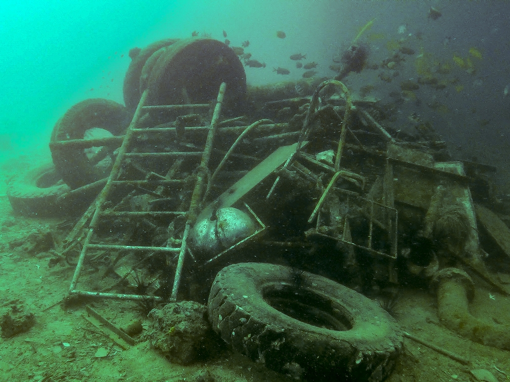 My last dive was with a Divemaster called Tahir and it was just a little 36 minute jaunt squeezed in before the boat left for Semporna. I wished I didn’t have to be on it. I could happily spend days here, diving and chilling and putting as much marine life in my eyeholes as possible. It was at a site called Paradise II where there were several small wrecks including a police boat and something that looked like a Borg cube. I didn’t get chance to study much, it wasn’t a relaxing dive, the first part was along the sandy bottom where I struggled to keep up with Tahir so I did what I usually do when I can’t keep up with a stronger diver; I stopped fucking trying. Bugger that, it might just be a short, shallow dive but I wanted to enjoy it.