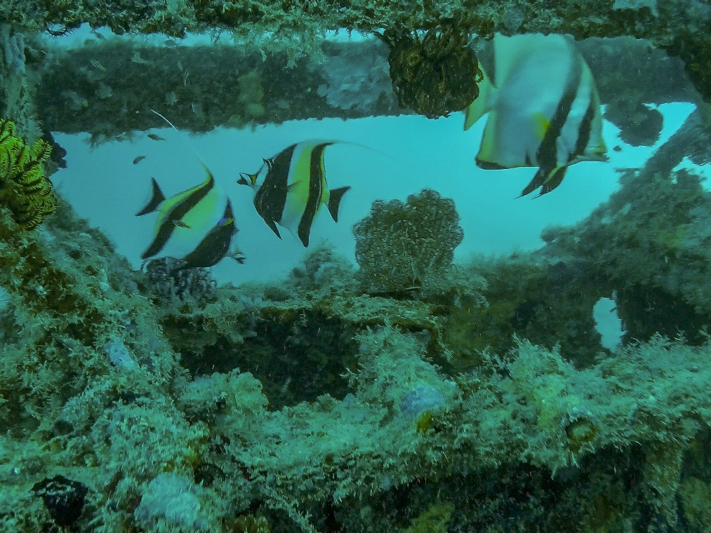 They’ve sunk loads of stuff directly underneath the rig, everything from tyres to a boat to what looked like a kids’ climbing frame. They’ve even dropped a toilet down there which Armen found hilarious given my gastric situation. At first glance I wasn’t impressed, it just looks messy, like fly tipping, but once you’re in there looking around the abundance of marine life is fucking incredible. The fish obviously love it so what do I know. I think this was my favourite dive of the day, everywhere I looked there was something interesting. Moray eels, sweet lips, lion fish, a big arse grouper, bat fish. Armen has a keen eye for nudibranches and pointed out several, I’ve never really seen them properly before.