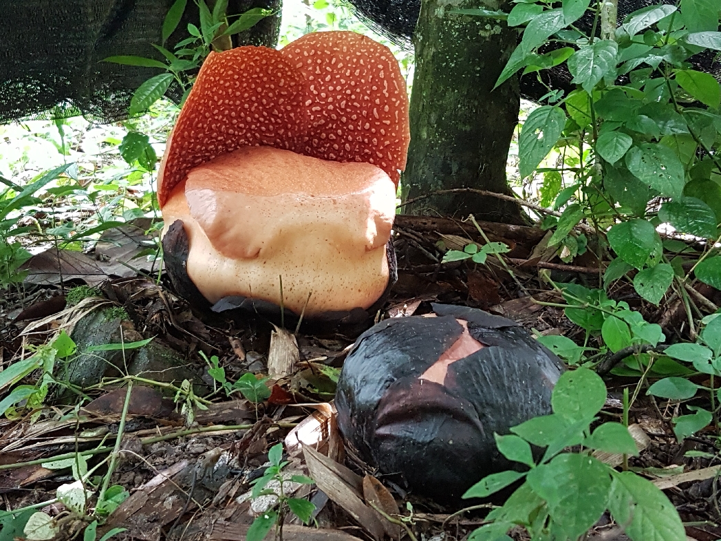 Righto, this flower then. We’d seen a sign when we were dropped off advising us that there were two flowers blooming at the moment at the Viviane Rafflesia Garden so it hadn’t been a wasted journey. It’s RM30 to be led from flower to flower by a disinterested teen, a price which won’t make your affluent Western bumhole twitch, but it’s a bit much just to spend fifteen minutes starting at something. We really, really wanted to see this flower though, the biggest flower in the world. They spend months and months gestating before blooming for a mere week then dying.