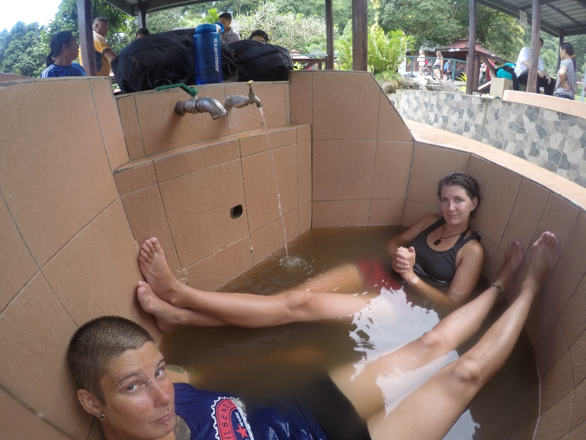 These hot springs then. There are cold pools for swimming but if you want a hot spring you have to wait for one of the deep, tiled vats to become free. We were pretty lucky that we got one given that in our infinite wisdom we’d decided to come here on a Saturday. We drained it and started filling it up with the scorching water (there’s also a cold tap so you retain your top layer of skin) that’s drawn directly from the naturally hot springs. It’s full of soil, a few people who’d obviously been here before had brought cloth to put over the tap to filter some of the sediment out but as that hadn’t even occurred to us we basically ended up sitting in a bath of dirty water which smelt a lot like arse. Definitely having a shower after this. Maybe two.