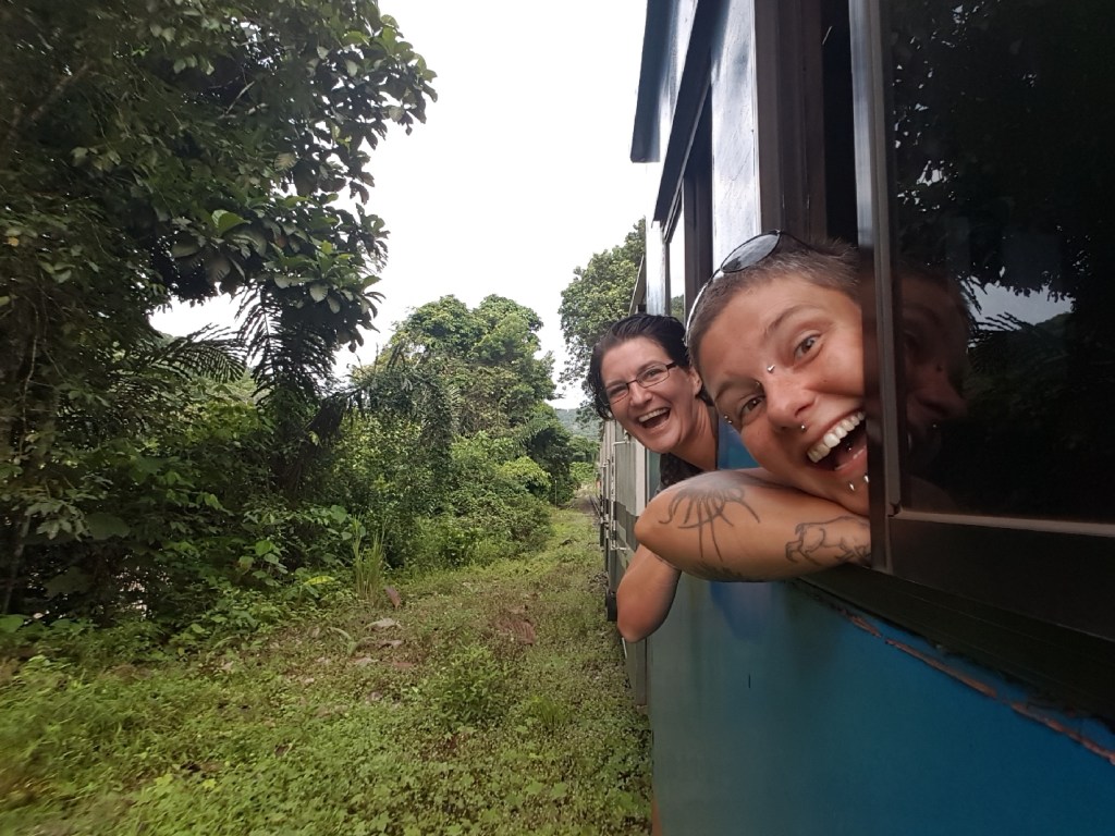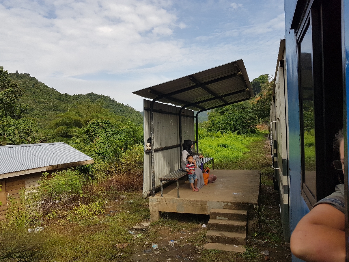 I love trains. I especially love trains that you can sit in the doorway of, or where you can hang out of the window like a dog, the wind in your hair and drool down your face. Sometimes tourists take this train as a scenic ride but it actually just gets the locals from A to B to the middle of bastard nowhere. We rattled through countryside, and that’s not some manner of romantic synonym for “travelled” that I plucked out of a thesaurus, it literally fucking rattled. We rattled alongside the Padas River for the most part, past palm oil plantations and forest, through tiny villages and random concrete platforms that served as stops built seemingly nowhere near anything.